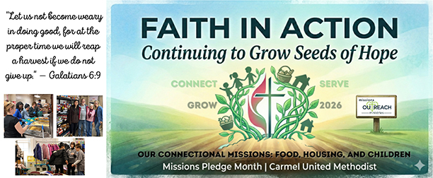 As we look toward our 2026 commitments, please pray about how you might connect and support CUMC’s Missions Ministry. Pledge cards have been mailed, are available ONLINE, or are available in the church office. Please bring your completed pledge card to worship on April 19th. God has big plans for us to continue spreading His love together and we look forward to doing that with you.